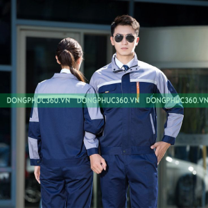 Mẫu áo bảo hộ lao động màu xám được thiết kế dạng bộ liền quần hoặc áo rời, phù hợp cho nhiều ngành nghề như cơ khí, xây dựng, công nghiệp nhẹ, kho vận.